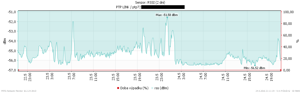 máme nově nasazeno několik RAY2/17GHz (od 800m do 2.2km) a u všech se nám děje to, že nám strašně kolísá RSSi - viz. přiložený graf. Nezávisle na počasí.