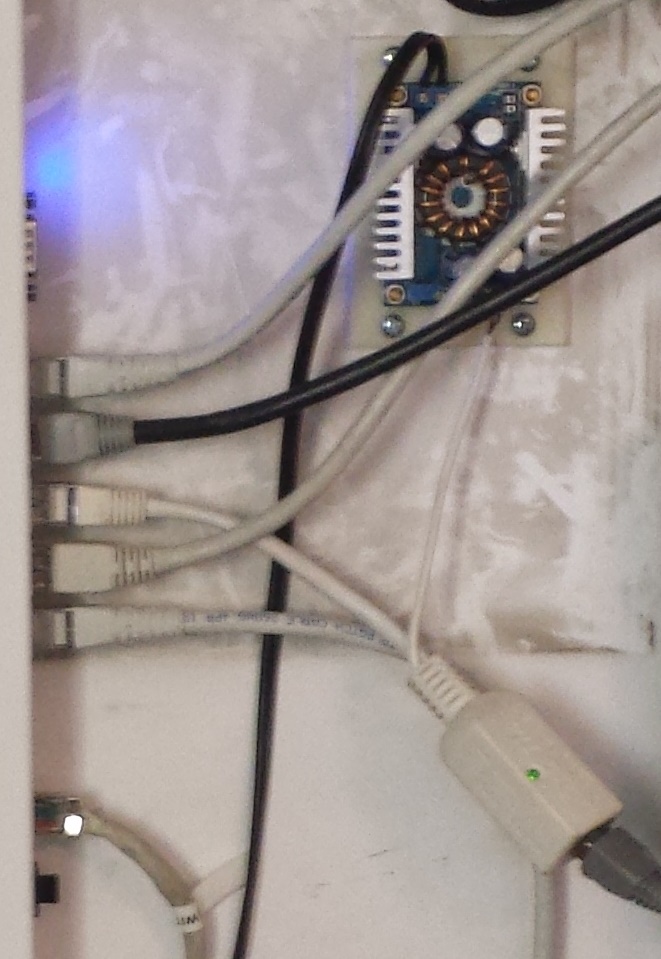 Kdyby se někomu nechtělo kupovat poe injector od tycon, tak lze použít gigabitové poe od mikrotiku, kterých máte určitě plný šuplíky. Ustřihnul jsem jack, napojil přímo na step-up měnič z 24V na 48V a funguje