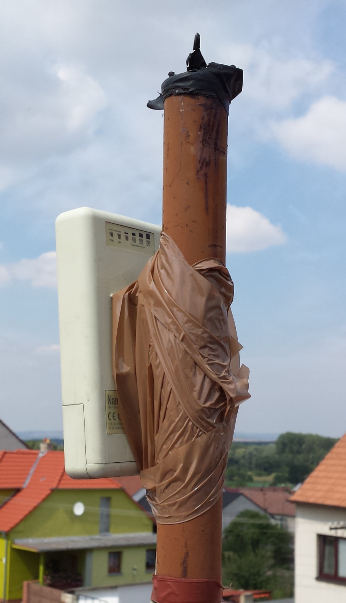 APcko nemenovanej firmy v malej dedinke. NanoBridge ktory im robi asi konekt pripojeny cez mensi kopec a stromy