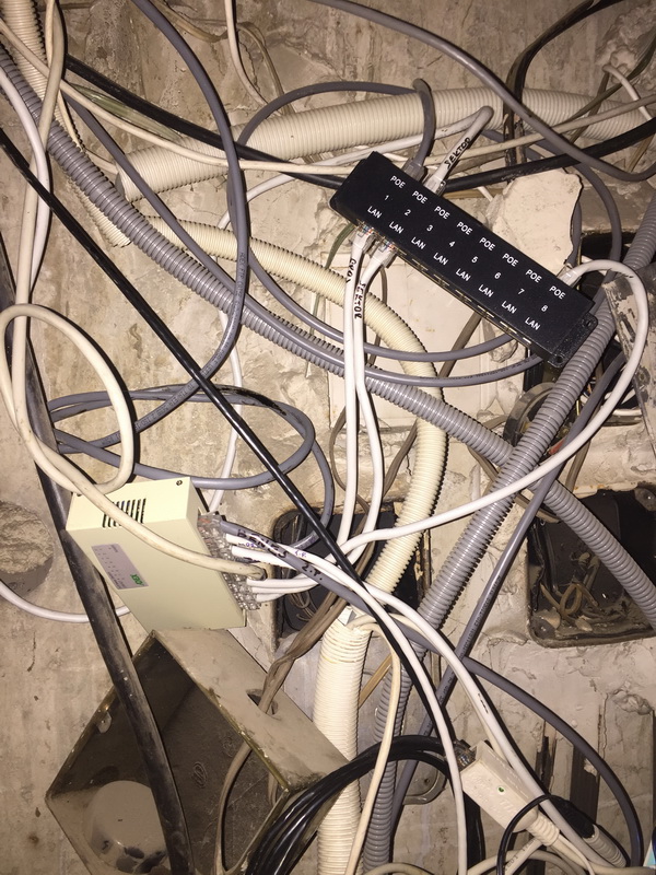 Stárnetí "ústředna" v elektrostoupačce. Na kabelu je sice napsáno "sektor", ale je tam samozřejmě UBNT všesměr.
