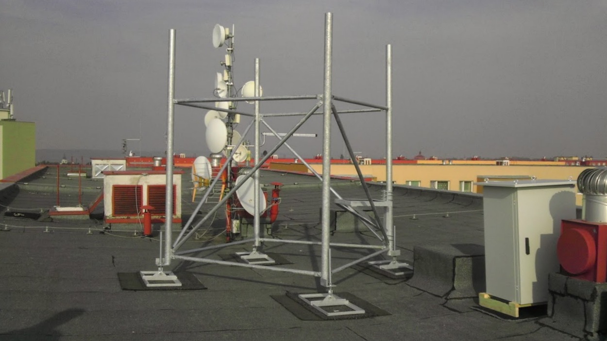 Pokud stavíš příhradu na paneláku, kde není strojovna, tak ji stejně nemáš kam chytit, takže naše konstrukce se dá postavit na panelák s výtahovkou i bez. Střecha ani nemusí být naprosto rovná - ona taková ani neexistuje. Je jasné, že na střechu se sklonem 10° se tohle nehodí. Jednou jsme dělali příhradu na rovnou střechu paneláku a už nikdy to nechci opakovat... budu používat už jen konstrukci, kterou jsem poslal - je to levnější, jednodušší a rychlejší.