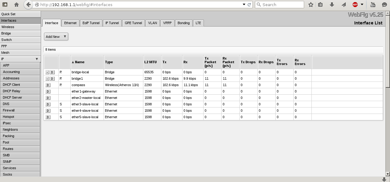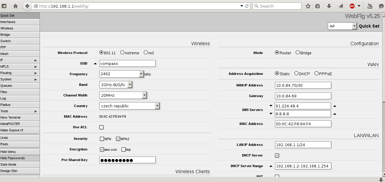 Mikrotik konfiguruji přes Webfig, níže přikládám screenshoty s konfigurací.