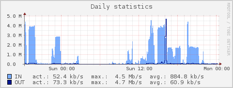 ISP připojení je 5 Mbps symetricky, tarif deklarovaný jako bez agregace a garantovanou minimální rychlostí (mezi 22 a 7 hodinou je garantována dvojnásobná rychlost, tedy 10 Mbps).