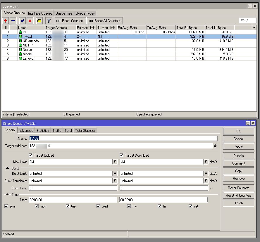 /queue simple set TV-LG max-limit=0/0Nemám doma SQ pravidlá tak som to skúšal len na nečisto, neviem či sa zresetuje počítadlo, nemalo by sa.