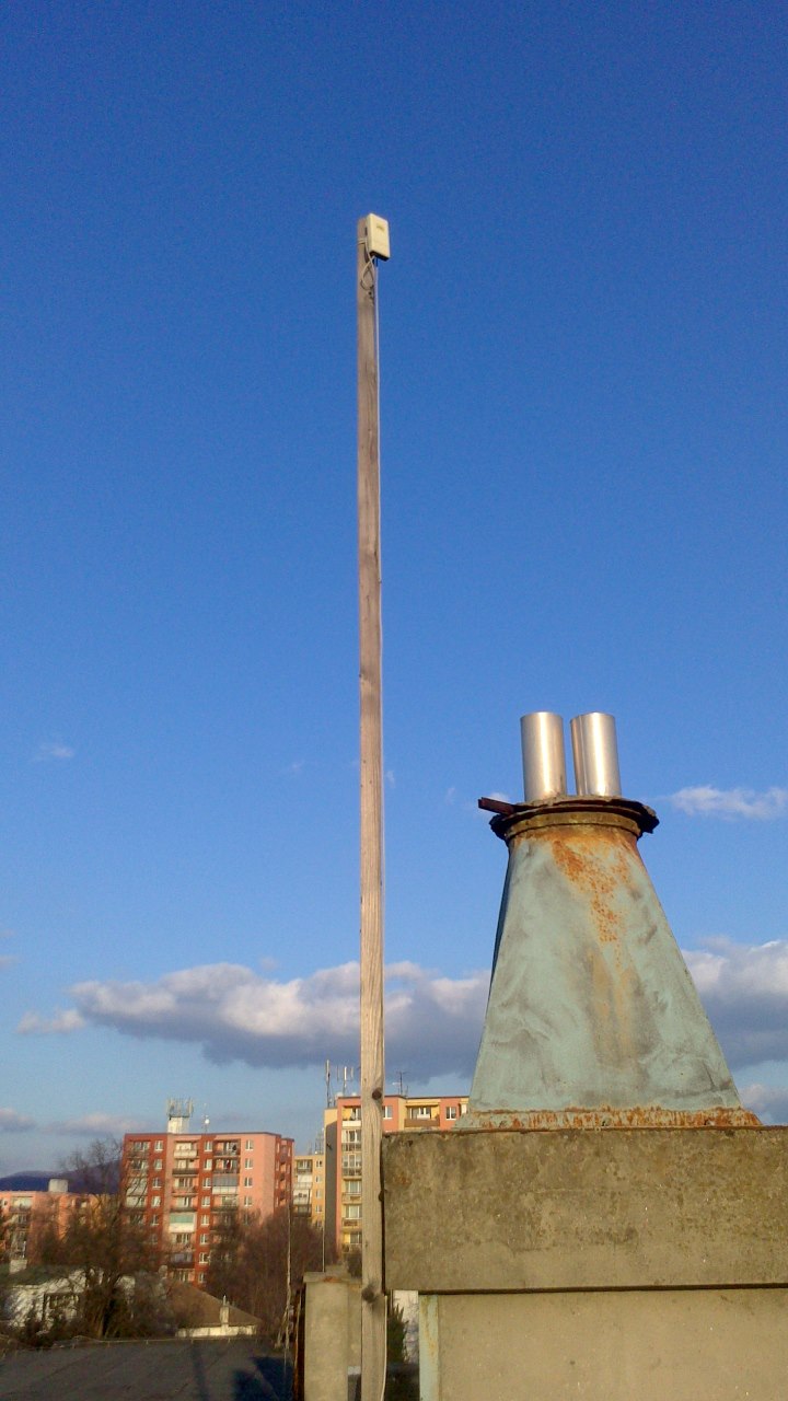 Stárnetí "ústředna" v elektrostoupačce. Na kabelu je sice napsáno "sektor", ale je tam samozřejmě UBNT všesměr.